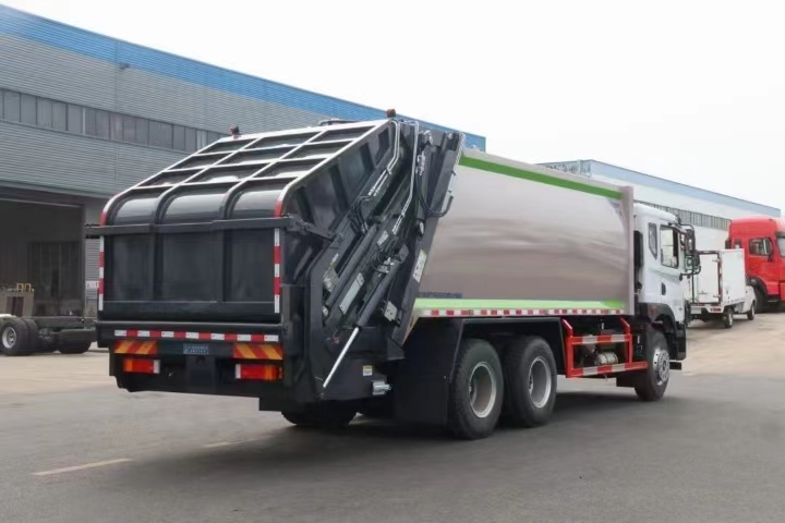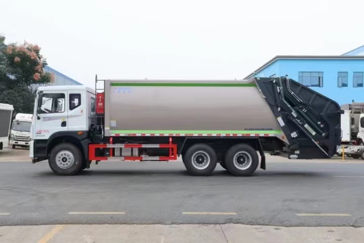 | 上裝配置 | 新款弧形箱體,箱體容積加大約22立方,箱體為優(yōu)質(zhì)高強(qiáng)度Q345錳鋼制作,底箱及填充器采用加厚鋼板,耐腐蝕使用壽命長(zhǎng),三層油漆噴涂處理/電泳工藝。裝載循環(huán)以及垃圾排出時(shí)間快,上裝部分具備雙向壓縮和蠕動(dòng)壓縮功能帶。新款結(jié)構(gòu)加大填充器,手電一體操作模式,帶駕駛室操作,帶駕駛室一鍵卸料功能,尾部裝置可以選裝垃圾翻轉(zhuǎn)斗,掛桶翻轉(zhuǎn)板或者大落地斗。PLC/CAN總線控制方式,光電開關(guān)加延時(shí)雙系統(tǒng)控制,降低故障率,方便維修。帶夜間照明裝置,帶污水箱,標(biāo)配選用:定制油缸(質(zhì)保兩年),中梅多路閥,液壓油泵(雙泵雙閥),帶液壓散熱器,嘉善取力器。 | ||
