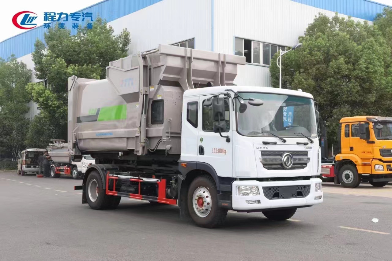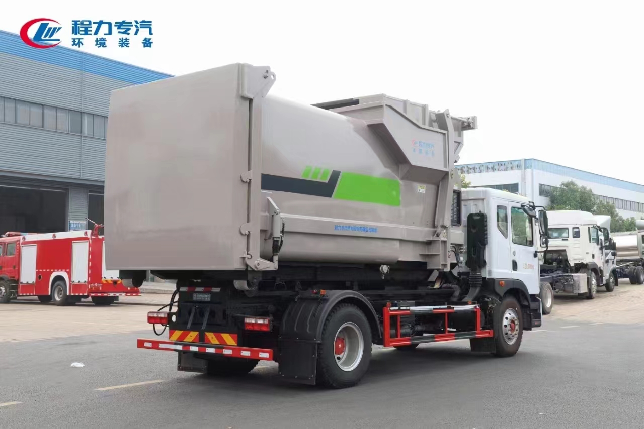 新工藝國六東風(fēng)多利卡D9勾臂車+移動(dòng)壓縮箱