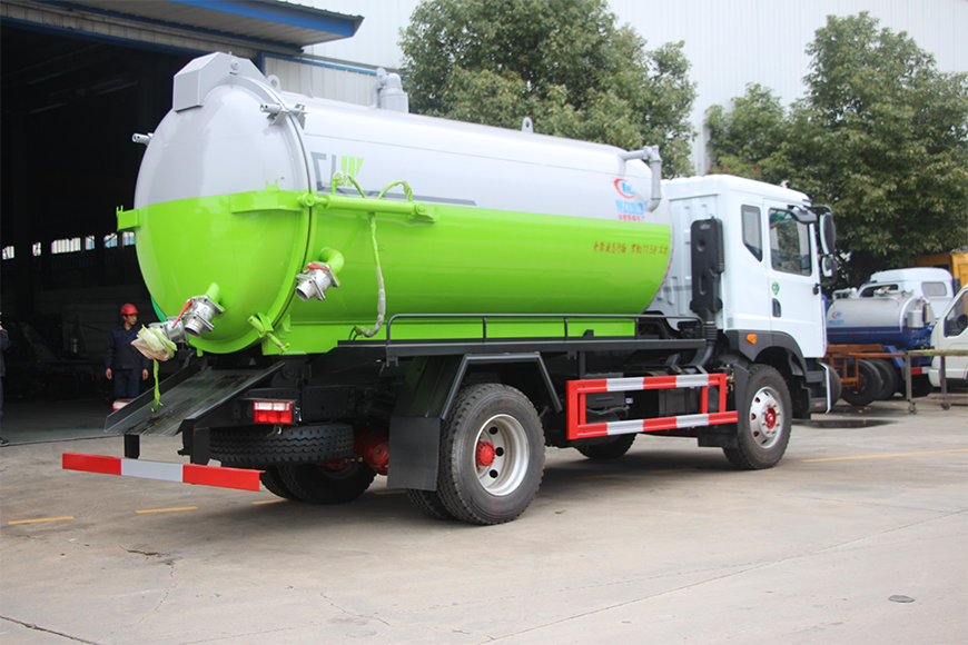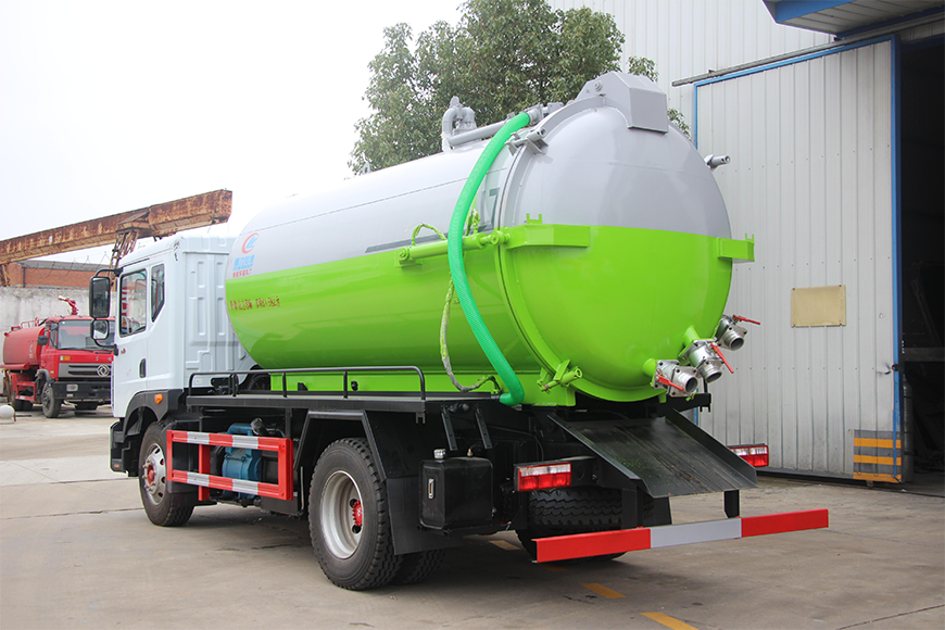 | 上裝配置 | 污罐:Q235武鋼6MM厚碳鋼板,標(biāo)配采用億豐SK-12水循環(huán)泵。防溢閥,視糞管,配一根8米吸污管,罐體封頭一次壓鑄成型、罐體帶舉升,后蓋為液壓開啟。罐內(nèi)污物可通過后蓋直接傾倒,具有真空度高、噸位大、效率高、用途更廣泛的特點(diǎn)。 | ||