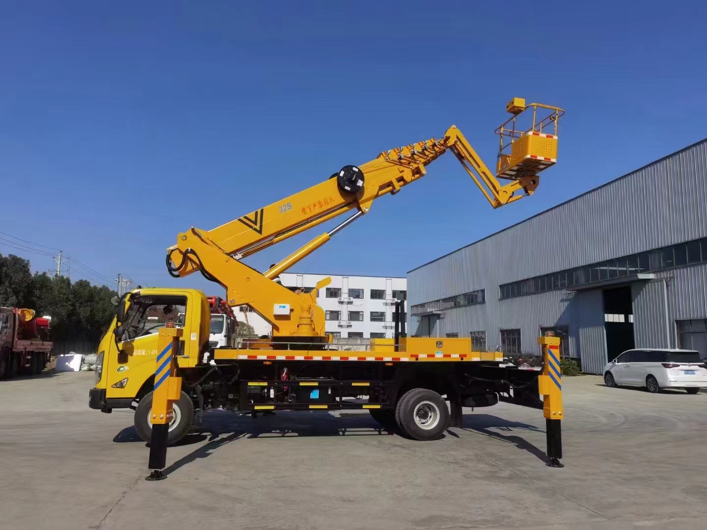 | 上裝配置 | 作業(yè)高度32米,帶小飛臂,六節(jié)六邊形同步伸縮工作臂,360度連續(xù)回轉(zhuǎn),配上下車自動(dòng)互鎖裝置,水平檢測功能,支腿檢測功能,裝有應(yīng)急電動(dòng)泵,電液比例控制系統(tǒng),實(shí)現(xiàn)無極調(diào)速,液壓自動(dòng)調(diào)平。 | ||